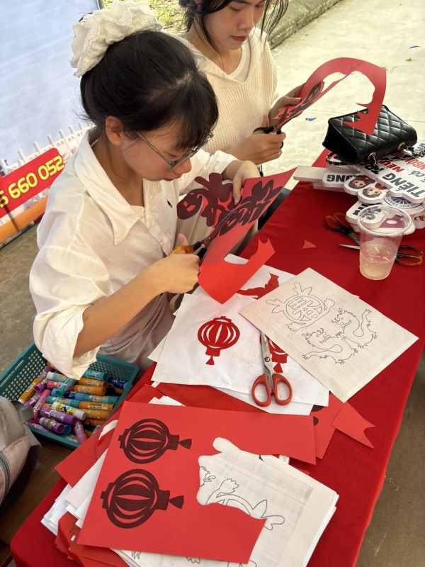 Các bạn được thử sức với độ khéo tay cực cao có tính kiên trì rất lớn đó là cắt chữ cắt hình và viết chữ Hán.