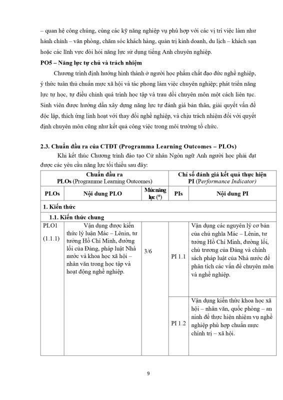 Chuẩn đầu ra CTĐT NNA 2024