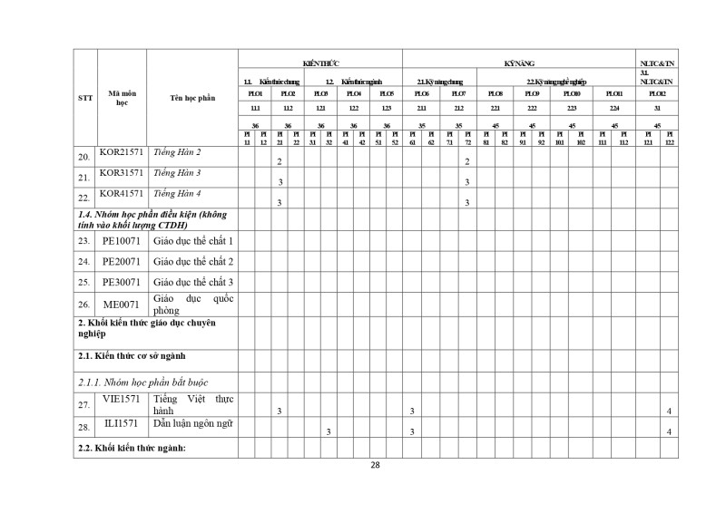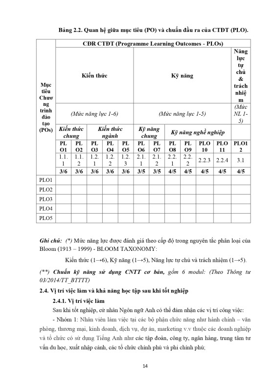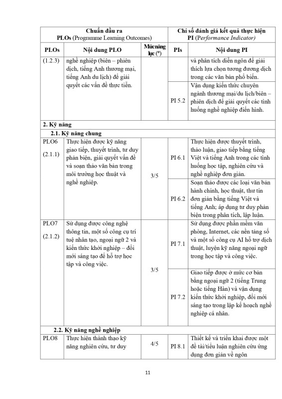 Chuẩn Đầu ra CTĐT