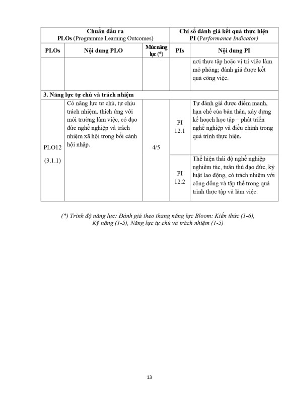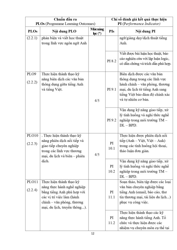 Chuẩn Đầu Ra Chương Trình Đào Tạo