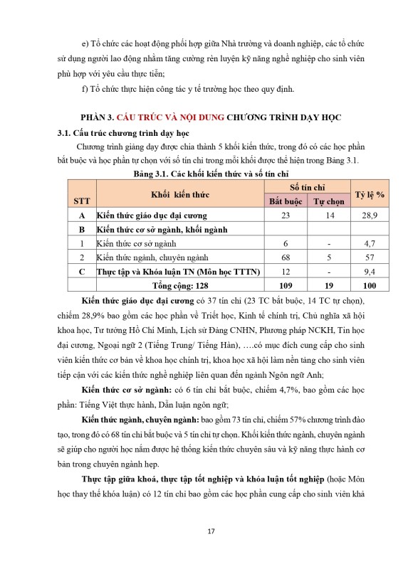 Khung chương trình đào tạo