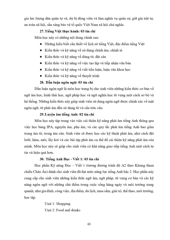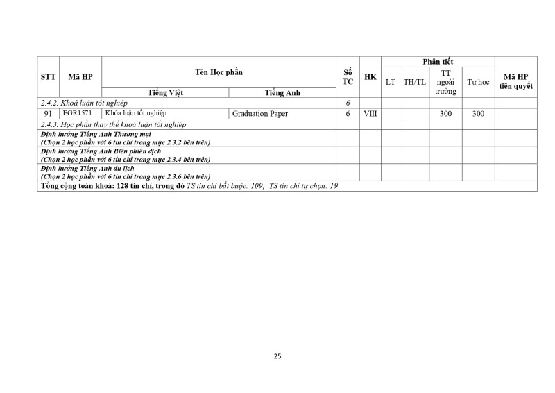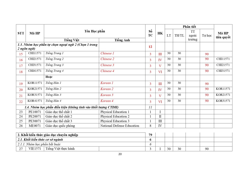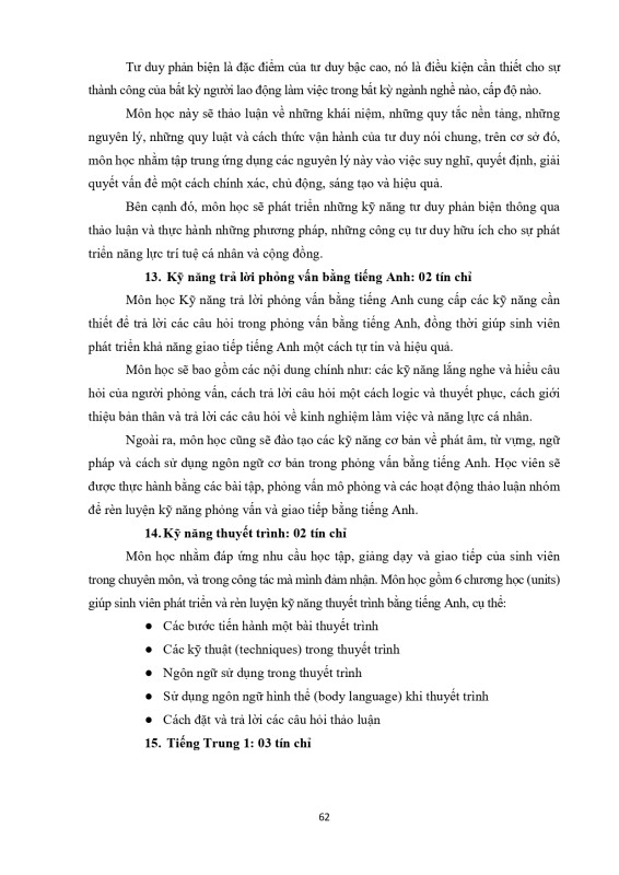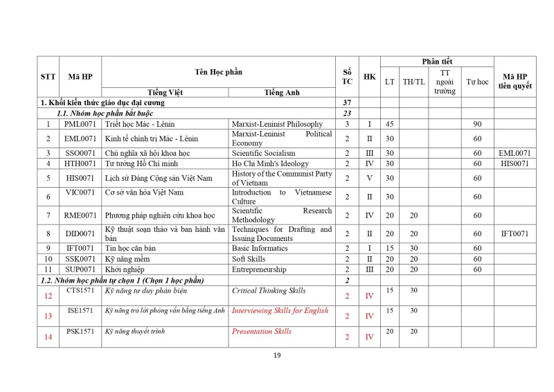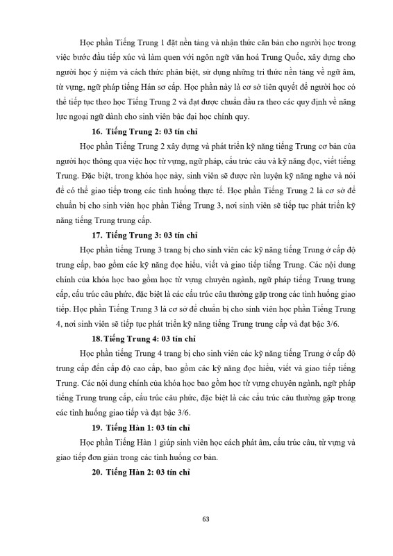 Khung Chương Trình Đào Tạo