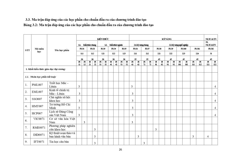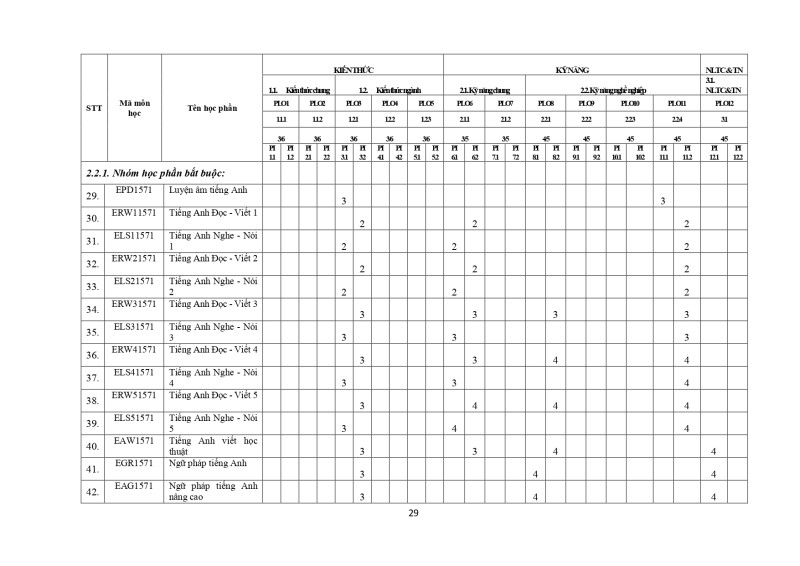 Chuẩn đầu ra chương trình đào tạo