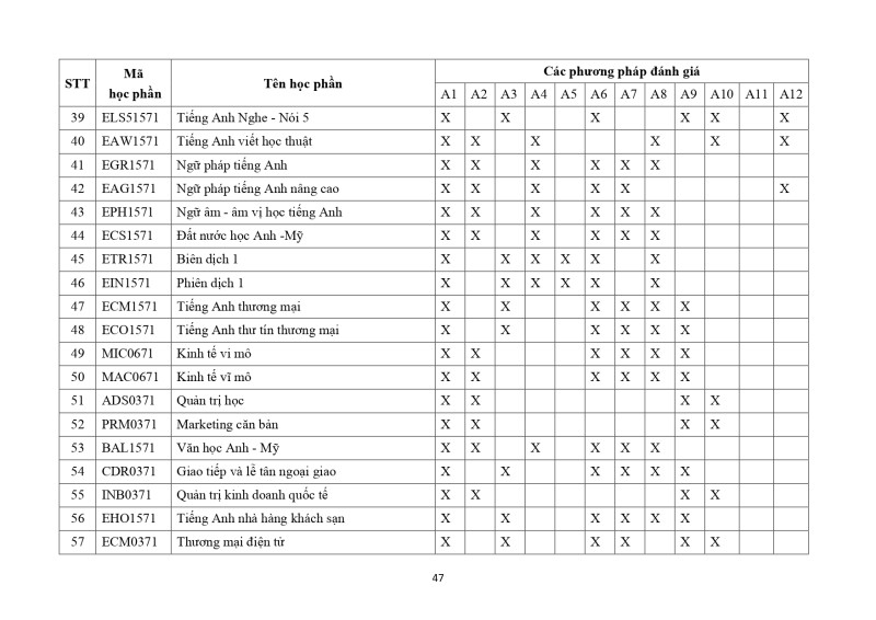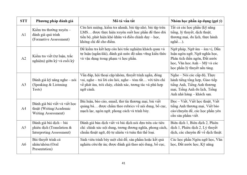Khung chương trình đào tạo NNA 2024