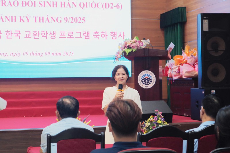 Phát biểu tại buổi lễ, TS. Nguyễn Thị Hoa Lý gửi lời chúc mừng, đồng thời dặn dò các em sinh viên giữ vững tinh thần học tập, rèn luyện bản lĩnh và phát huy hình ảnh sinh viên Trường Đại học Thành Đông tại môi trường quốc tế. Đại diện nhóm sinh viên, em Lê Anh Dũng bày tỏ niềm xúc động, sự biết ơn tới thầy cô, gia đình và nhà trường đã tạo điều kiện, đồng thời hứa sẽ nỗ lực học tập để xứng đáng với niềm tin, kỳ vọng.